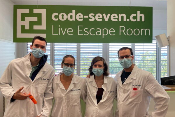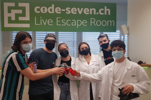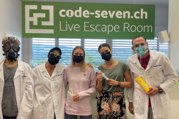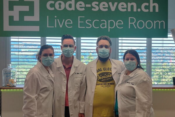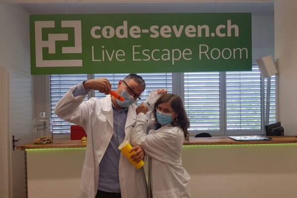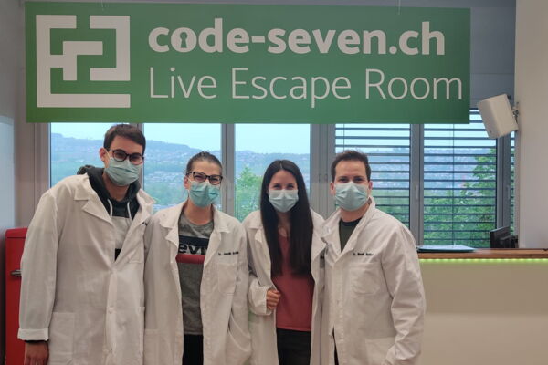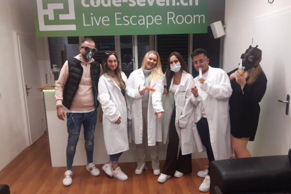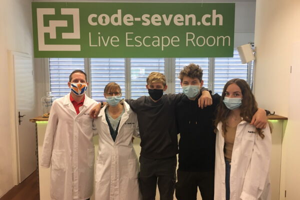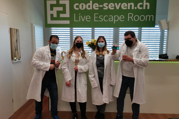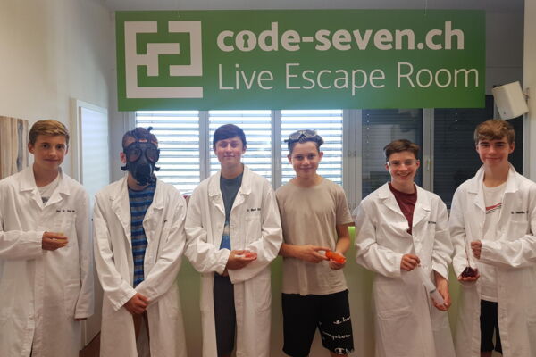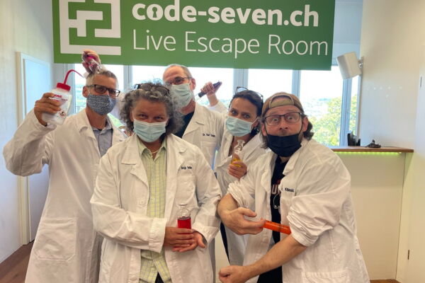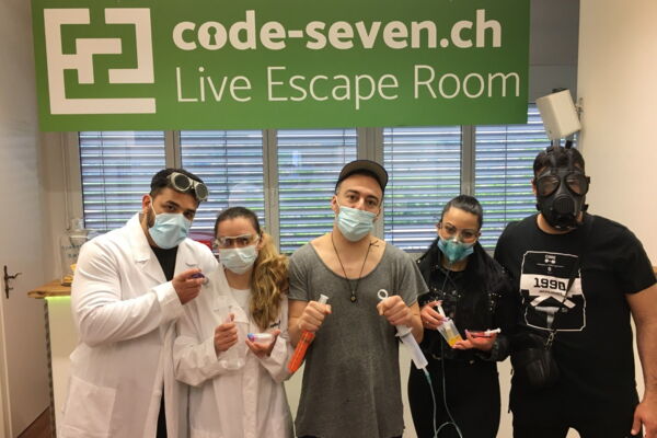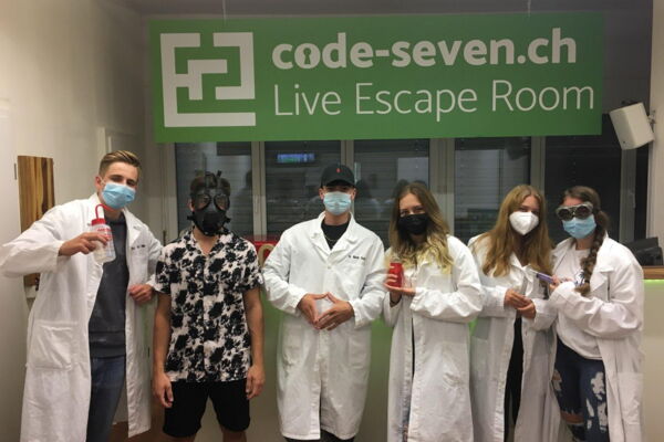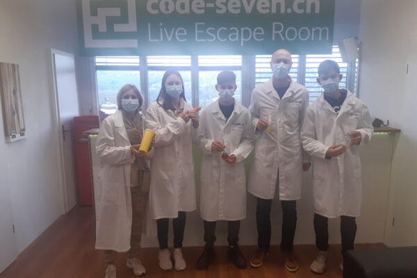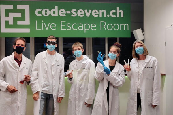 Die Gruppe «Sinser Labor-Bubbles» sind in unserem Live Escape Room weit gekommen, aber unter ...